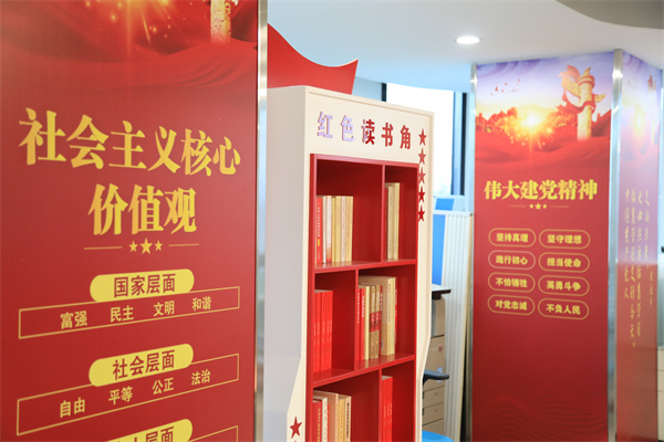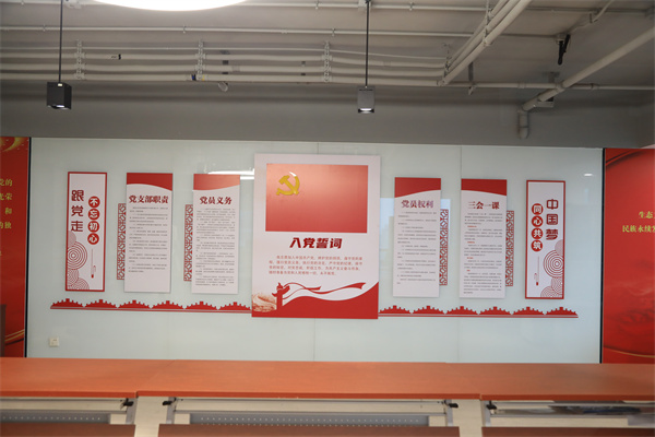 本著“統(tǒng)籌規(guī)劃、綜合利用、功能完善、節(jié)約成本、一室多用”的原則,在原27層培訓(xùn)室的基礎(chǔ)上進(jìn)行了改造提升,科學(xué)規(guī)劃布置了黨旗、入黨誓詞、黨員義務(wù)、黨員權(quán)利、“黨組織架構(gòu)圖”等基礎(chǔ)內(nèi)容。還配備了黨建書(shū)柜,設(shè)置了支部展示窗口,增設(shè)了精神文明創(chuàng)建展板,確保了黨員學(xué)習(xí)教育有陣地、交流互動(dòng)有平臺(tái)、形象展示有載體,有力提升了集團(tuán)總部黨建工作標(biāo)準(zhǔn)化、規(guī)范化水平。