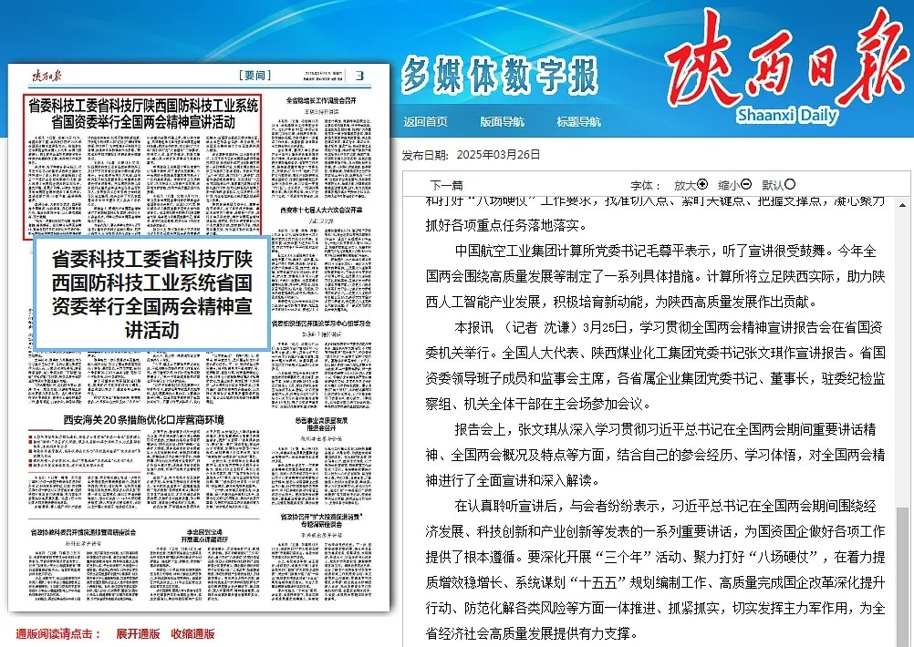 3月26日,陜西日報以《省國資委舉行全國兩會精神宣講活動》為題,對省國資委系統(tǒng)學習宣傳貫徹全國兩會精神情況進行了報道,其中重點對陜西環(huán)保集團黨委書記、董事長郝軍亮提出的環(huán)保集團貫徹落實意見進行了報道?,F(xiàn)刊載如下,以饗讀者。